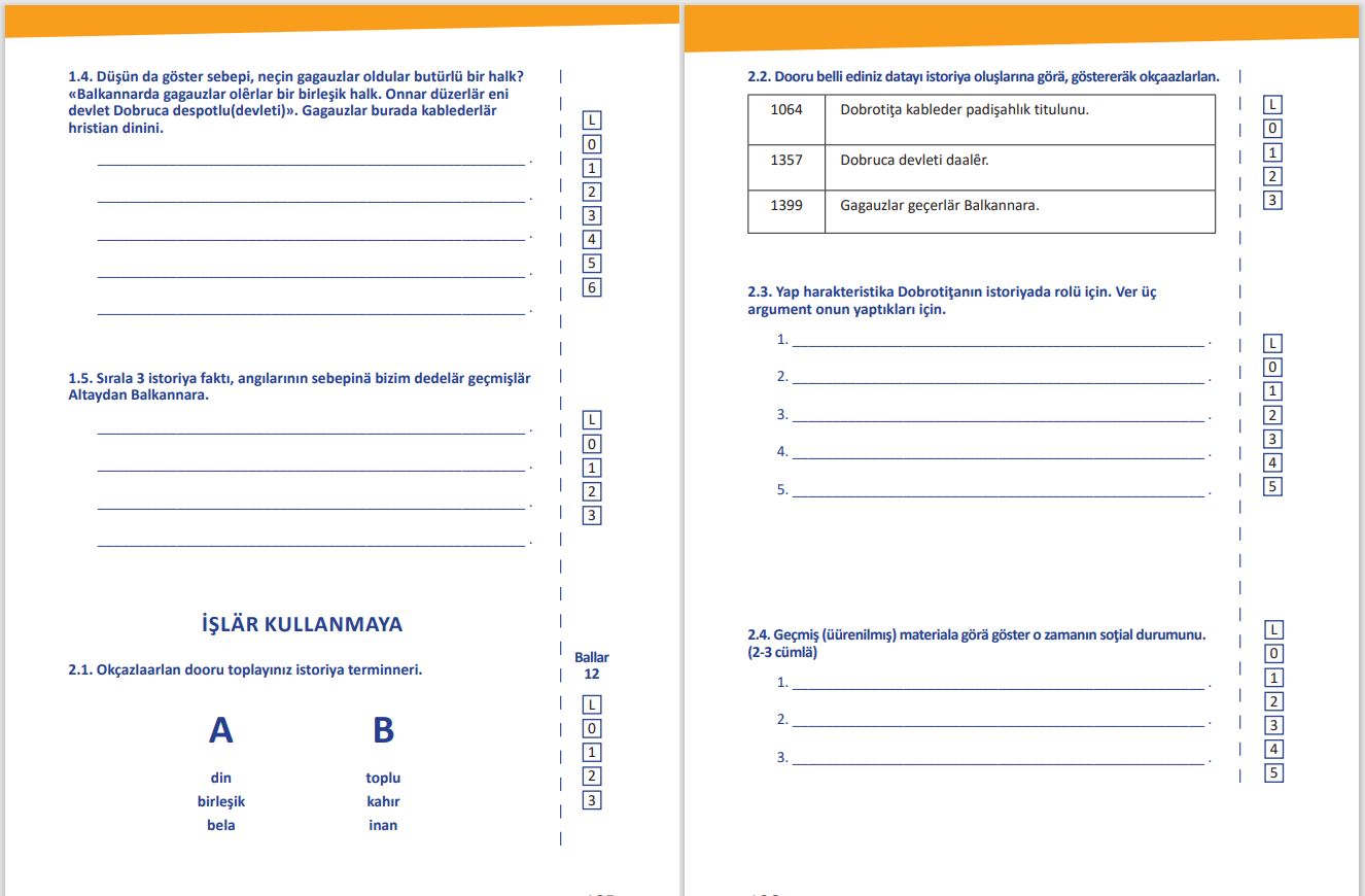 Gagauziya BAM tarafından teklif edilän Gagauz halkının istoriyası, kulturası hem adetleri 5-inci, 7-inci klaslara deyni kiyatlar maketlerin dartışmasında pay aldılar direktorlar hem üüredicilärGagauziyanın hepsi okullarından, kim götürer Gagauz halkının istoriyası, kulturası hem adetleri hem Gagauz dili hem literaturası predmetlerini. Reţenziyaları kiyatlara verdilär ekspertlär-uzmannar – bilimcilär, regional hem millet uurlarda bilim hem üüretim kurumnarın üüredicileri.